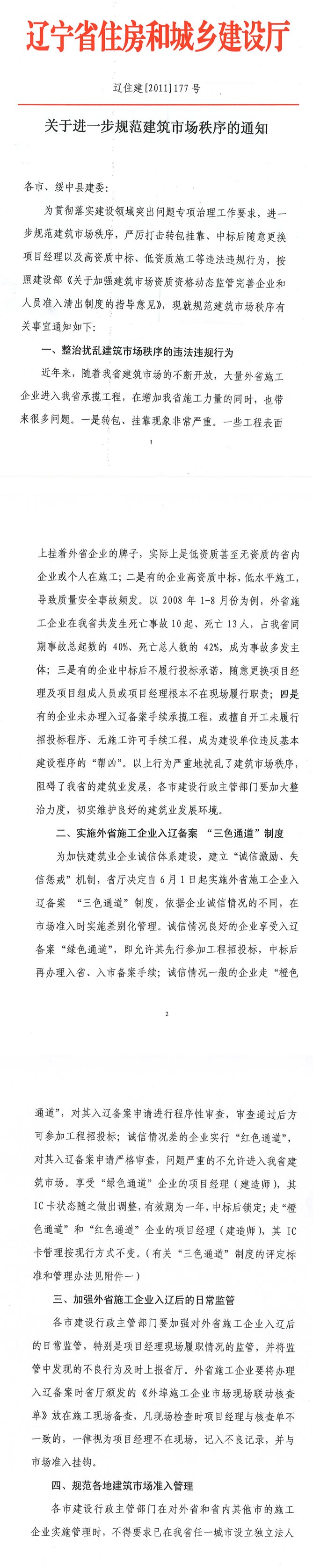 【概要描述】關于進一步規范建筑市場秩序的通知