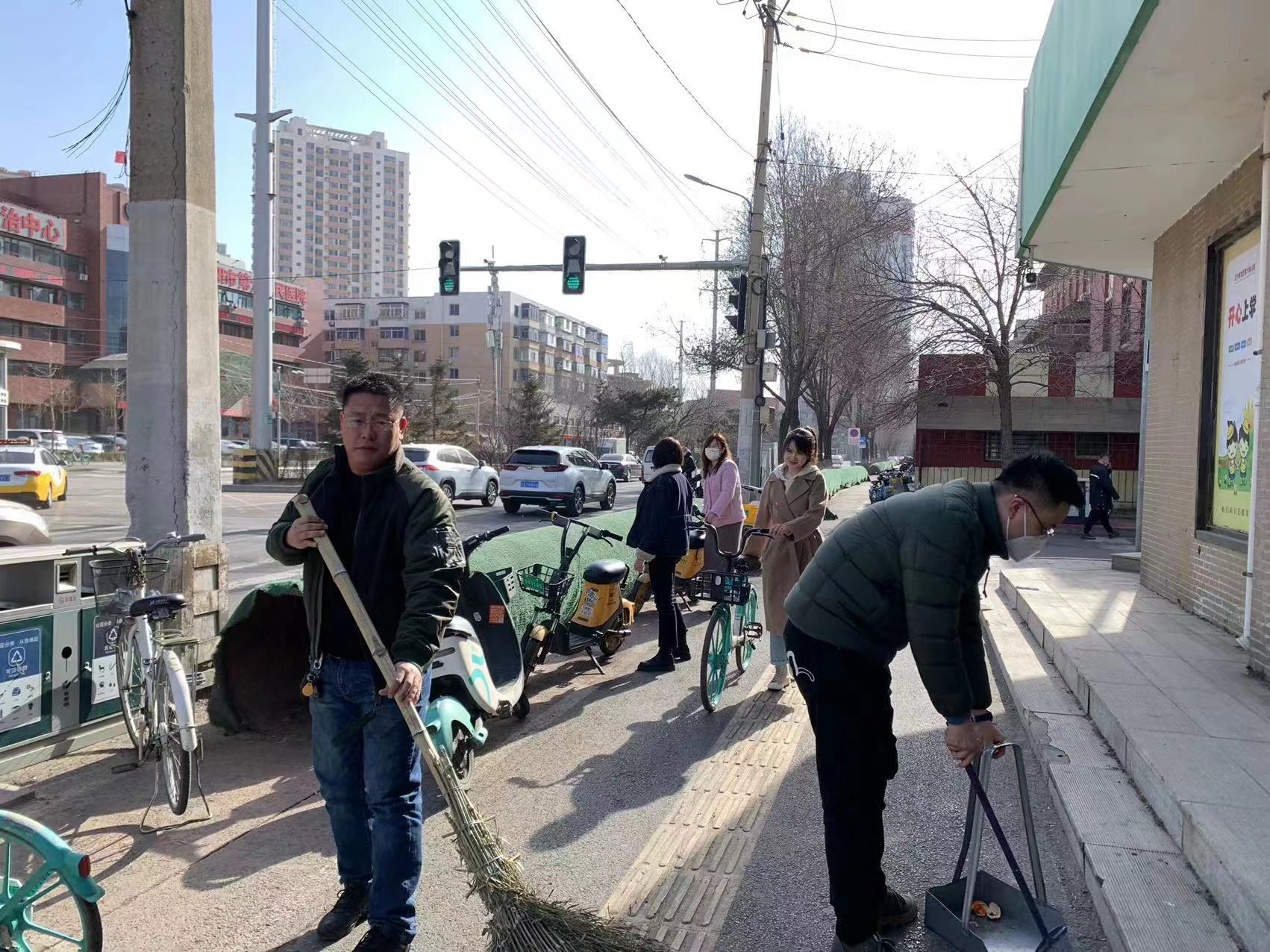 清掃和平南大街路面衛生,規范共享單車擺放
