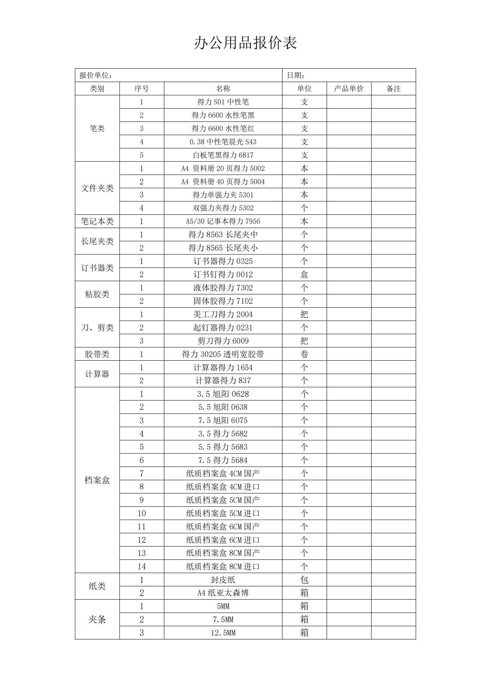 2.供貨要求:要求品牌為得力、晨光且滿足辦公用品采購清單需求。提供優(yōu)質(zhì)且符合相關(guān)標(biāo)準(zhǔn)的產(chǎn)品,保證交貨及時(shí),提供完整的發(fā)票和售后服務(wù)。